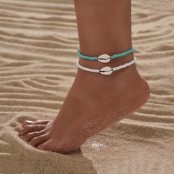 2 יח'\סט חוף עם חרוזים בעבודת יד קרסוליים bohemia חרוז כחול טבעי קרסול צמידים לנשים
